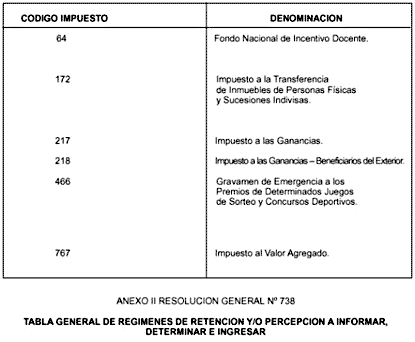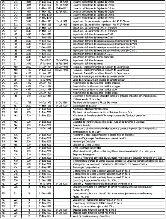 relación al año 2000, las establecidas por la Resolución General N°720).