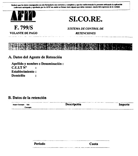 Control de Retenciones VERSION 3.00", el volante de pago F. 799/S, el