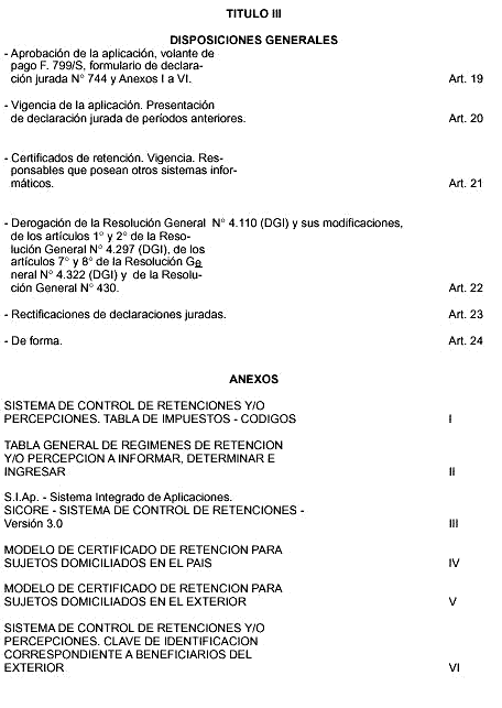 (DGI), los artículos 7° y 8° de la Resolución General N° 4.322 (DGI) y la Resolución