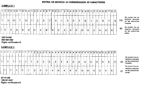 obtención del dígito verificador será la del módulo 10, que se consigna en el